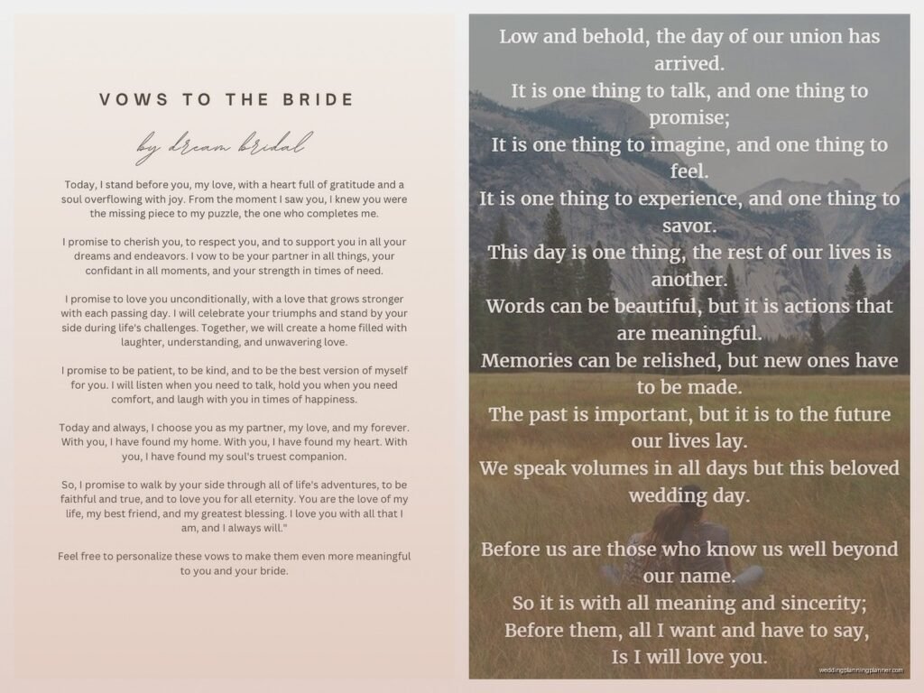 Okay So You Need Vow Examples For Him Look, writing vows for your groom is one of those things that sounds super romantic until you’re sitting there with a blank document at 11pm wondering what the hell you’re supposed to say. I’ve been planning weddings since 2009 and I gotta tell you, the number of […]