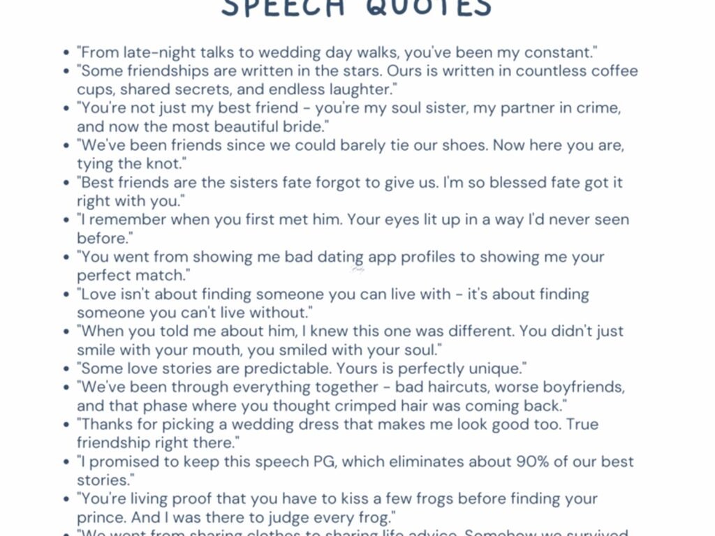 Right so the biggest thing people mess up is they wait until literally the night before and then panic. I had a bride text me at 11pm once asking if her matron of honor could just “wing it” and I was like… technically yes but also please don’t? That was spring 2023 and honestly the speech ended up being fine but it was way more stressful than it needed to be.