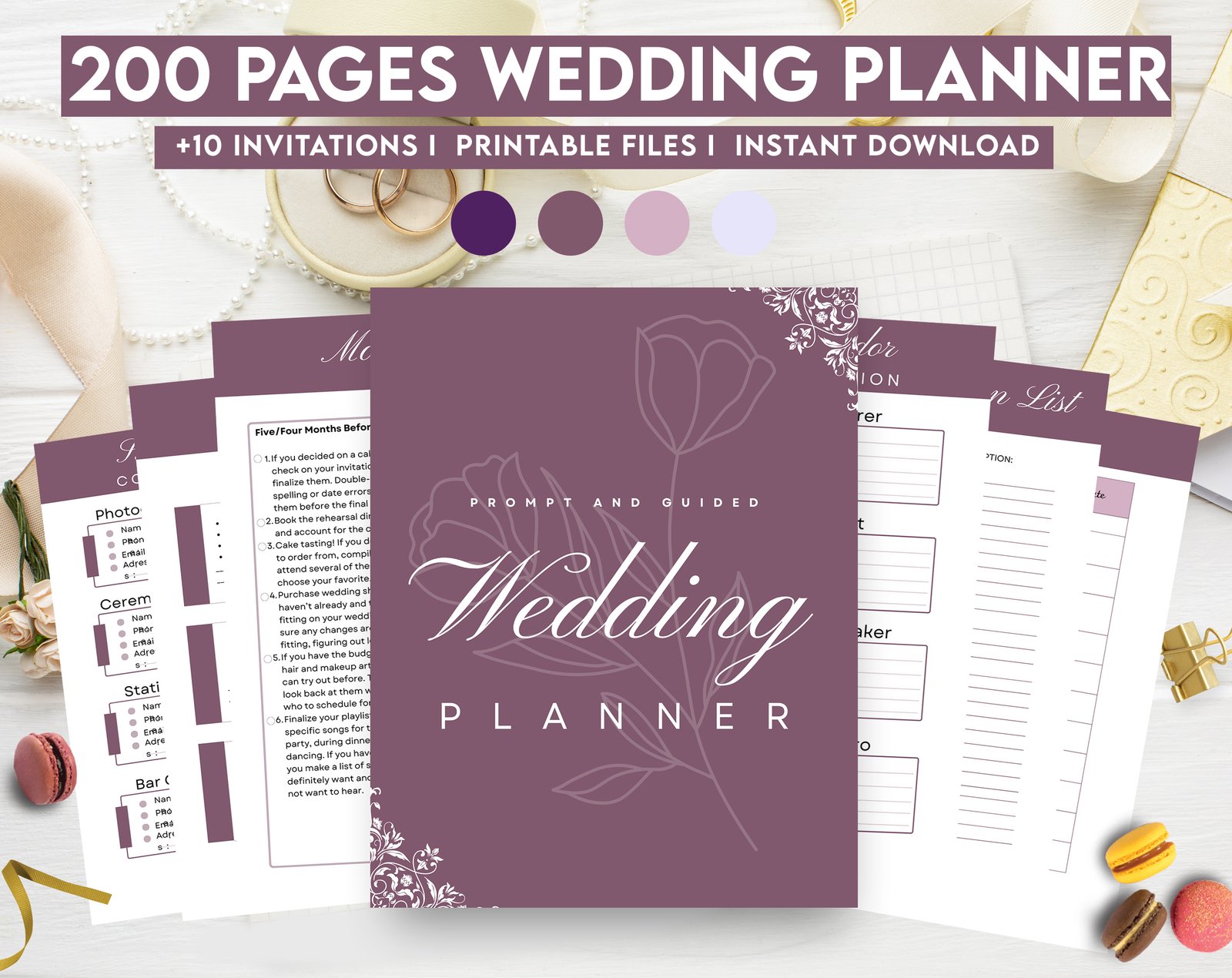 • 200-page printable wedding planner (Canva Editable format)