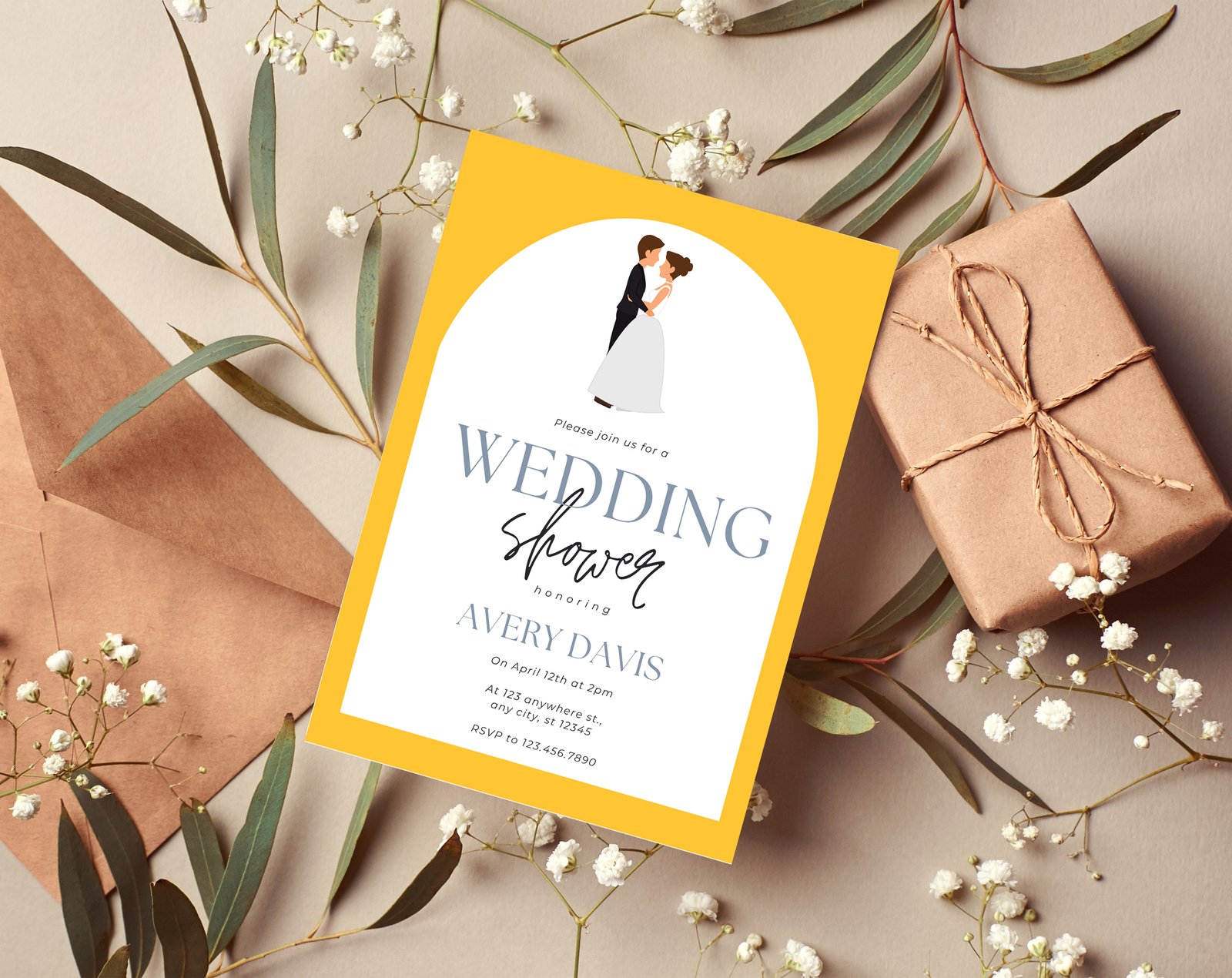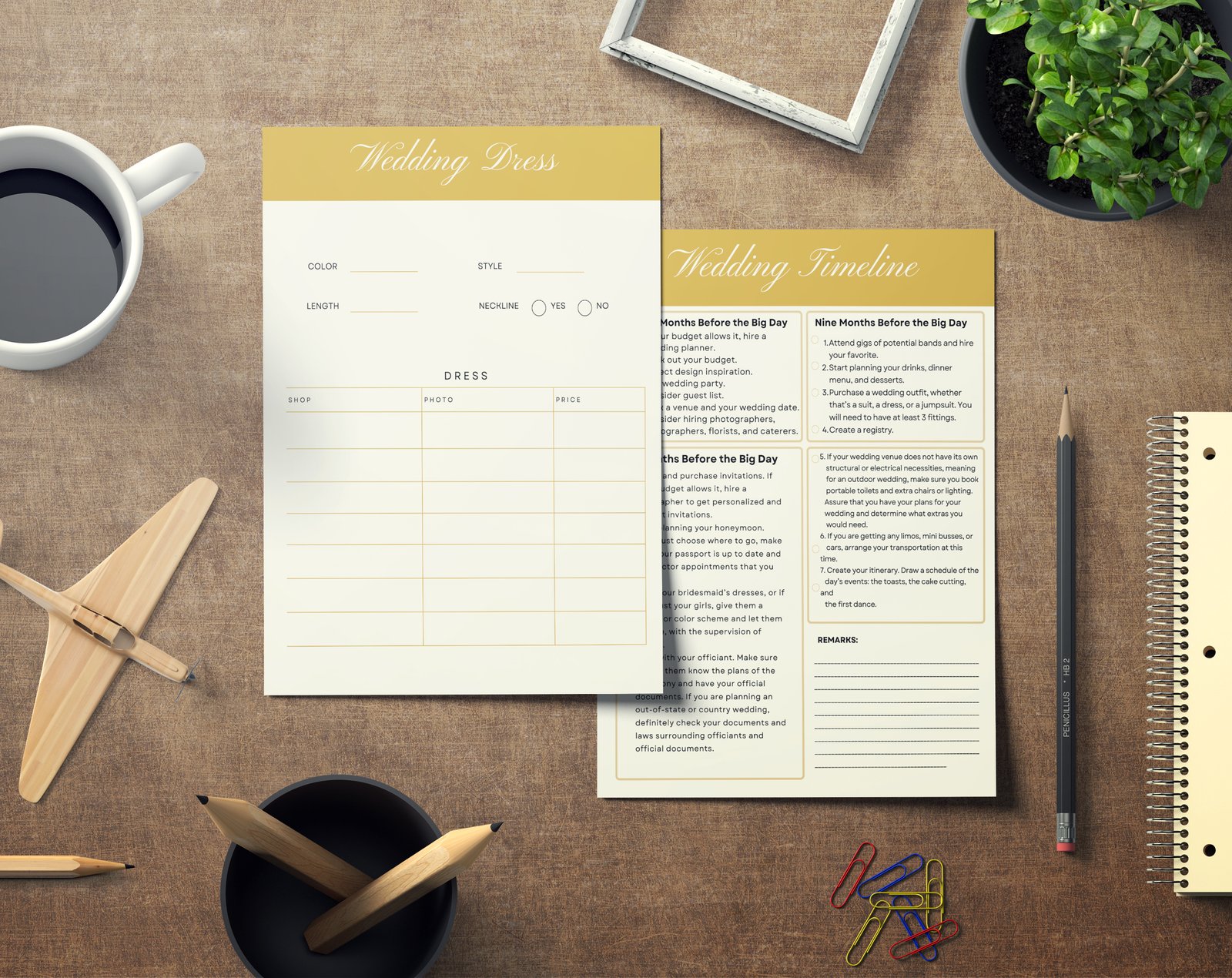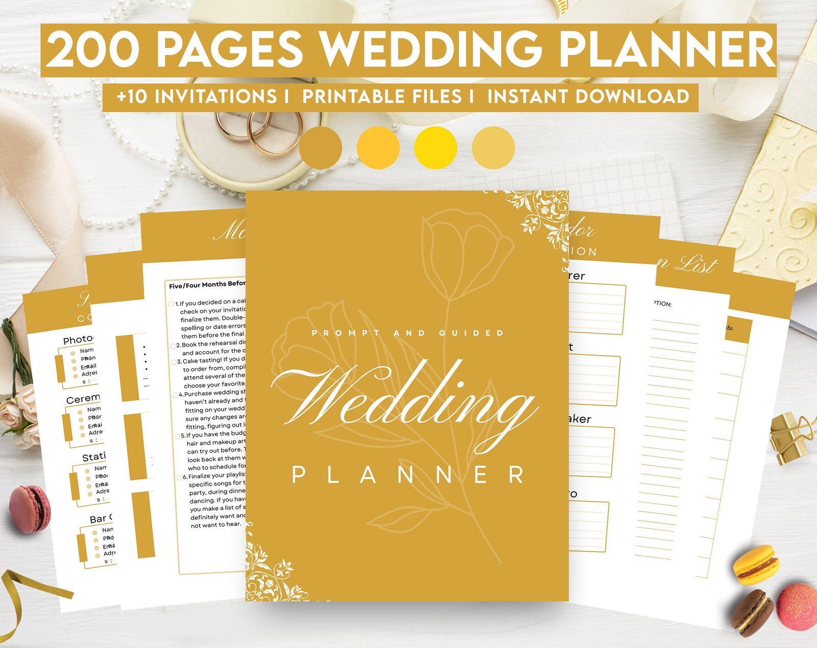 Yellow Wedding Planner Bundle – 200-Page Printable PDF + 10 Editable Wedding Invitations | Instant Digital Download