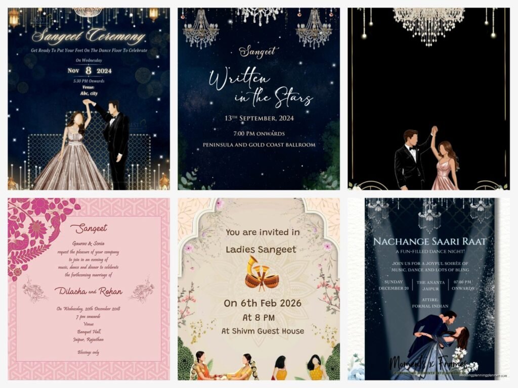 So here’s the thing about wording – you want it to match the vibe of your sangeet. Is it gonna be super traditional with family performances? Or is it more like a Bollywood party situation? The language should reflect that.