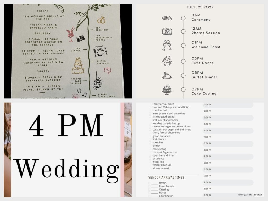 - Full wedding day timeline