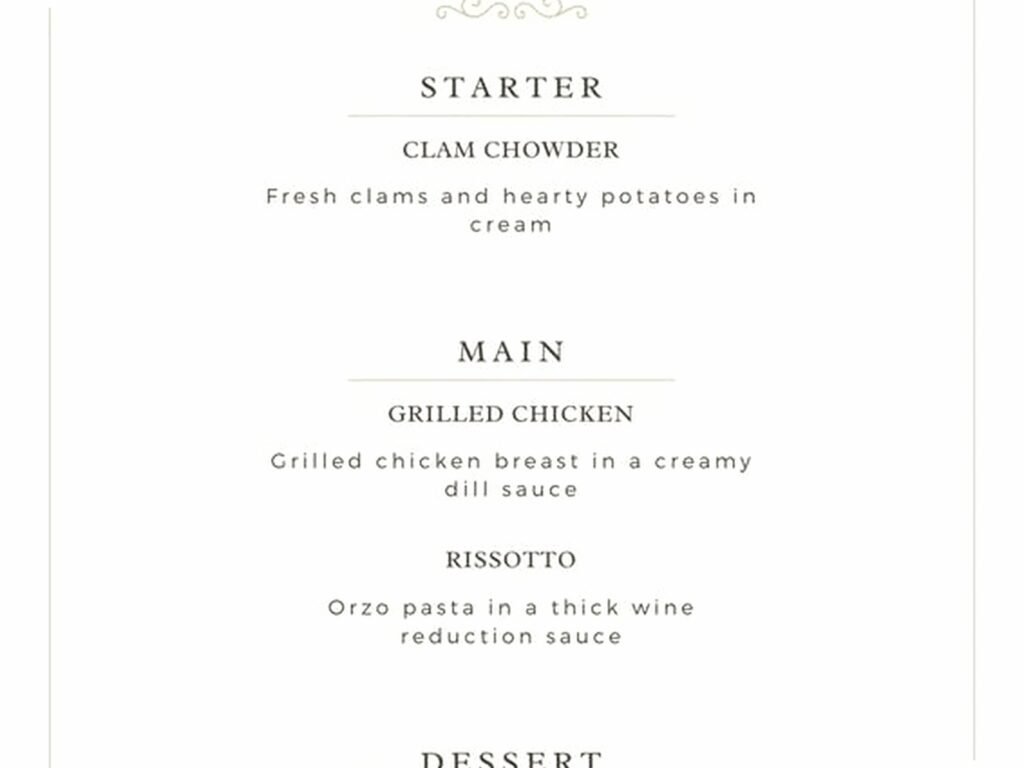 - The word “Menu” or “Dinner” as a header